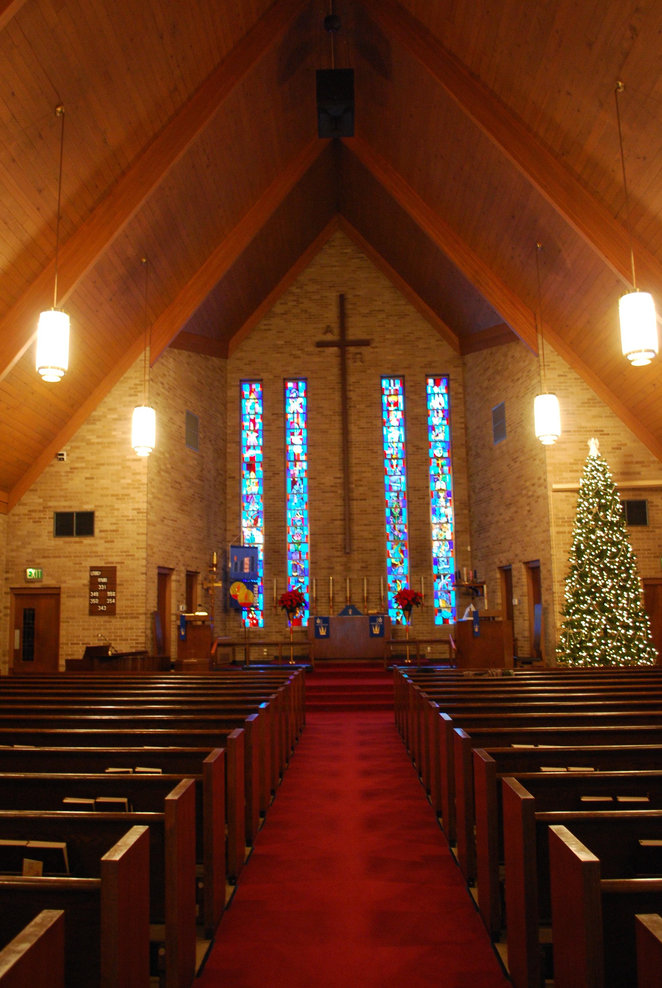 Following the liturgy in our Sunday services might be a challenge the first time you visit our congregation. The key to following along in the service is the first page on the inside cover of the bulletin. There you have an outline of the liturgy and hymns with page numbers. A more simple list of page numbers can be found on the hymn boards up and to the right and left of the chancel (altar area). The service page is listed first, followed by the hymns in order as they appear in the service. The Introit and readings are printed on an insert inside the bulletin.